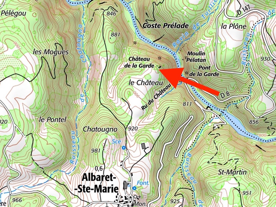 30 juin 1862 : l'instituteur Poulalion évoque le château : "Sur un rocher qui domine la Truyère, se trouvent les ruines d'un vieux château que l'on appelle le château de la Garde. Ce château appartenait à la maison d'Apcher ; il fut incendié pendant la révolution de 89." (point 2°, en 1ère page)
