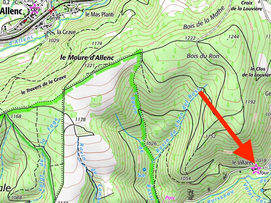 La tour, située dans la commune d'Allenc, est tout ce qu'il reste d'un ancien château et est actuellement un lieu d'exposition intégré au Vallon du Villaret, espace de loisirs et de culture en pleine nature.
